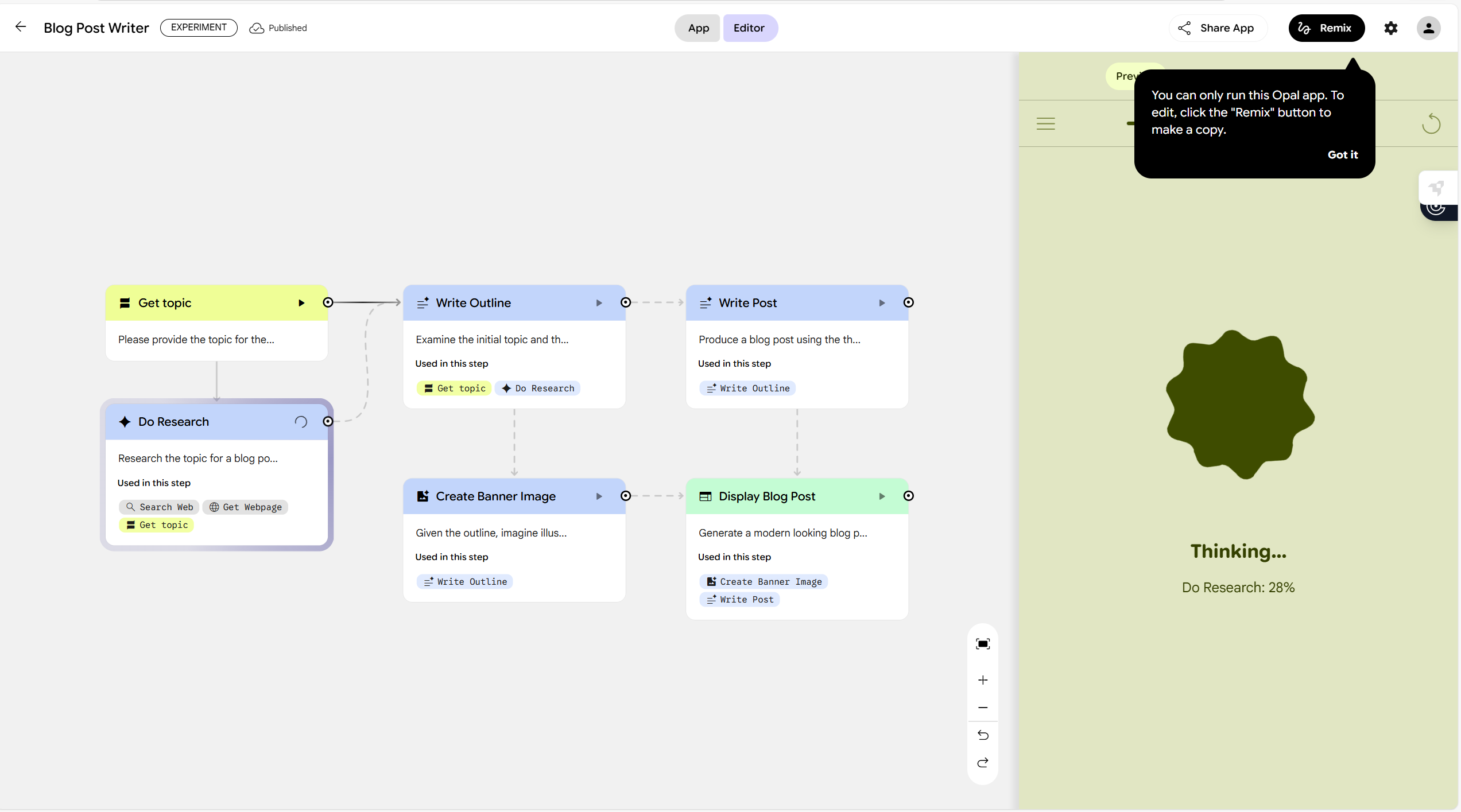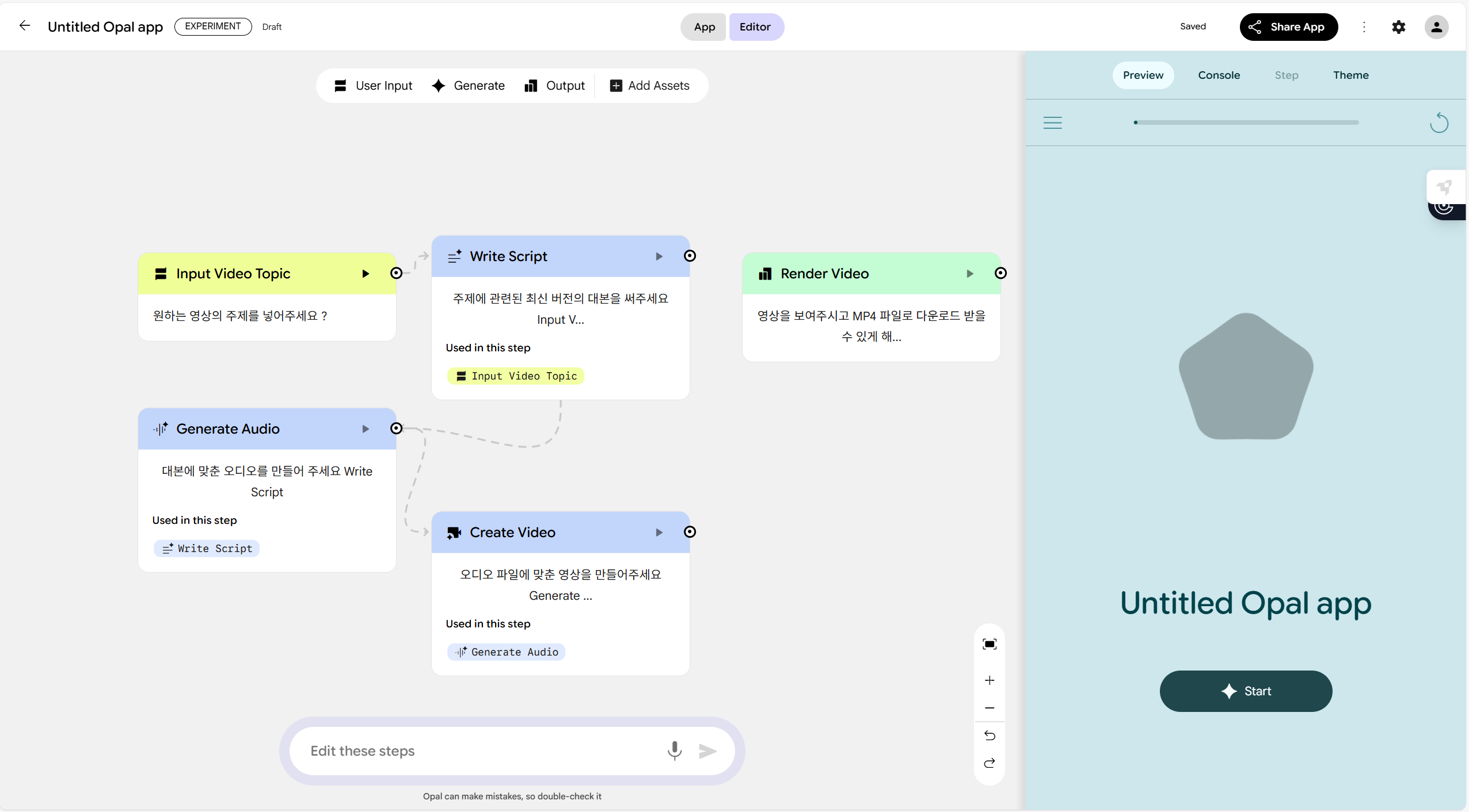 구글 오팔(Opal)을 며칠 제대로 돌려보니, 이건 ‘노코드 툴’이라기보다 영상·이미지·오디오를 한 번에 굴리는