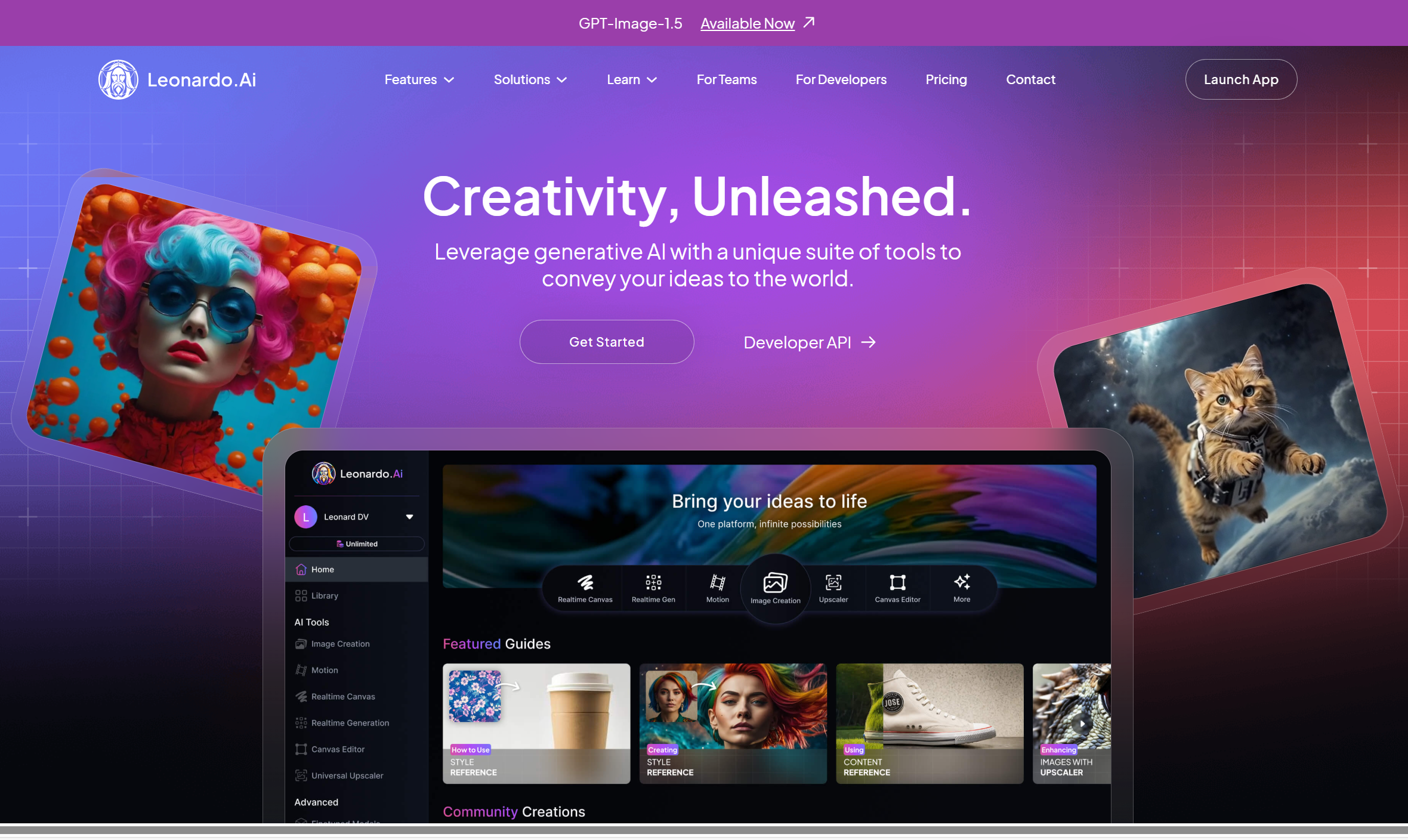 레오나르도 AI는 ‘그냥 그림 뽑아주는 사이트’에 머물지 않고, 이미지 생성부터 편집, 업스케일, 모션, 실시간 캔버스까지 한 플랫폼 안에 묶어둔 게 인상적입니다. 그래서 써보면 일종의 원터치 디자인 툴에 가깝습니다. 이 툴은 요즘 옴니버스 생성형 AI 툴에서도