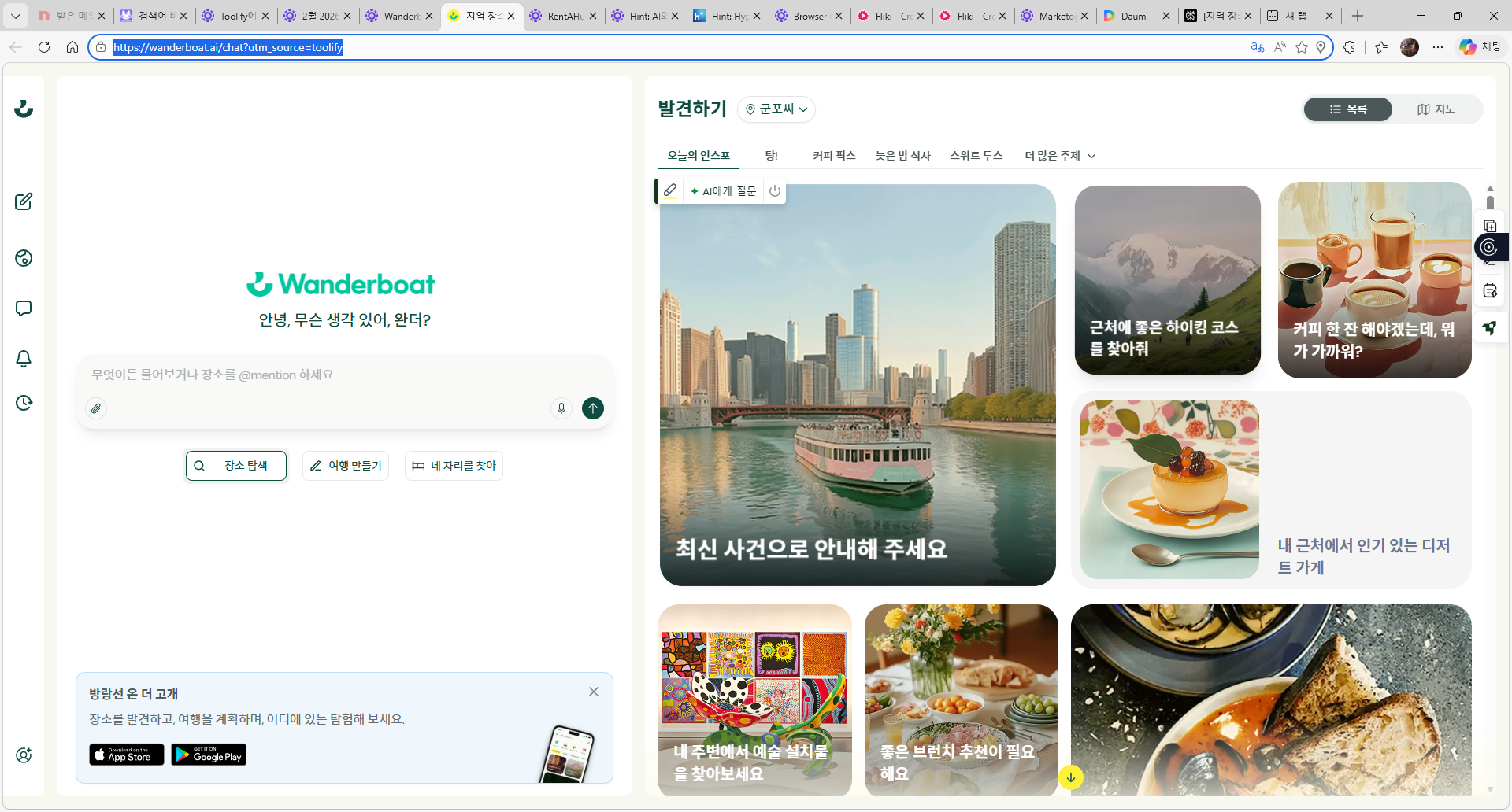 요즘 여행 계획 세우려고 검색창을 열면 블로그, 인스타, 유튜브까지 끝도 없이 스크롤하게 됩니다. 리뷰는 많은데 정작 “지금 내 상황에 딱 맞는 곳”을 찾기까지 시간이 너무 오래 걸리는 게 문제죠. Wanderboat.ai는 이런 번거로운 과정을 줄여주는 AI 로컬 여행 가이드 서비스입니다.