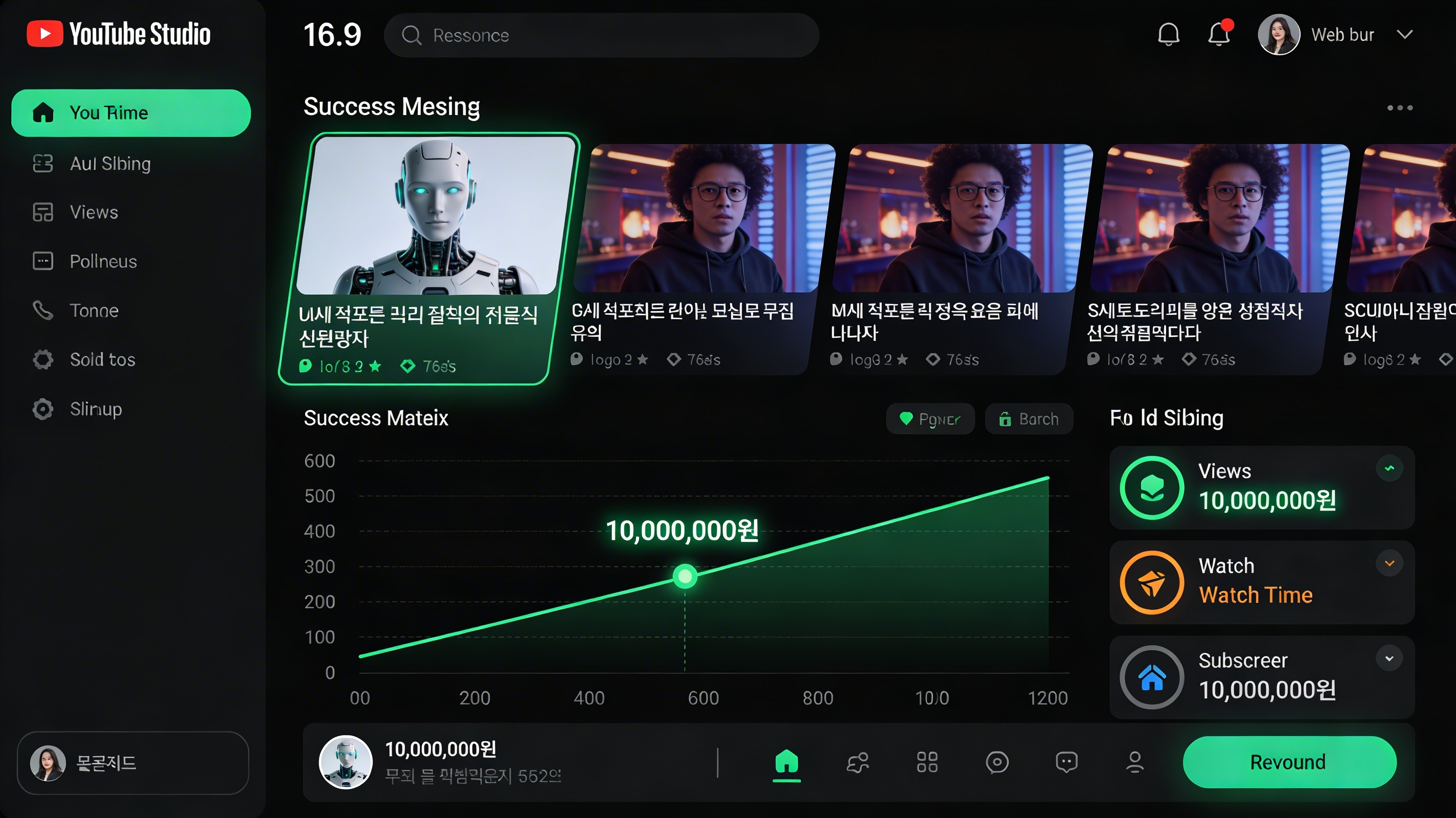 - 유튜브 광고 수익만으로 월 1,000만 원을 만들려면, 조회수와 CPM이 상당히 높아야 합니다.