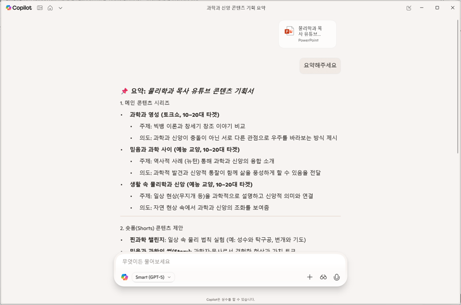 세 번째 매력: 브라우저와 문서에 통합된 검색·요약 기능으로, 리서치와 자료 정리를 한 번에 도와주는 “상주형 리서치 도우미” 역할을 해준다.이것은 다른AI에서도 가능하지만 대부분 PDF 파일로 확인이 가능한 경우가 많음. 오피스 계열의 문서를 바로 올려서 해결할수 있다는 것은 오피스를 자주 쓰시는 분들께는 많은 시간 절약을 줄 수 있습니다.