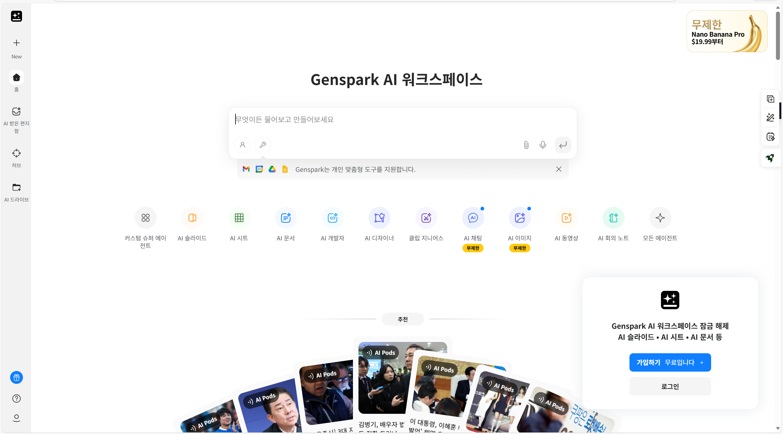 - genspark.ai 접속 → 무료 크레디트로 로그인.