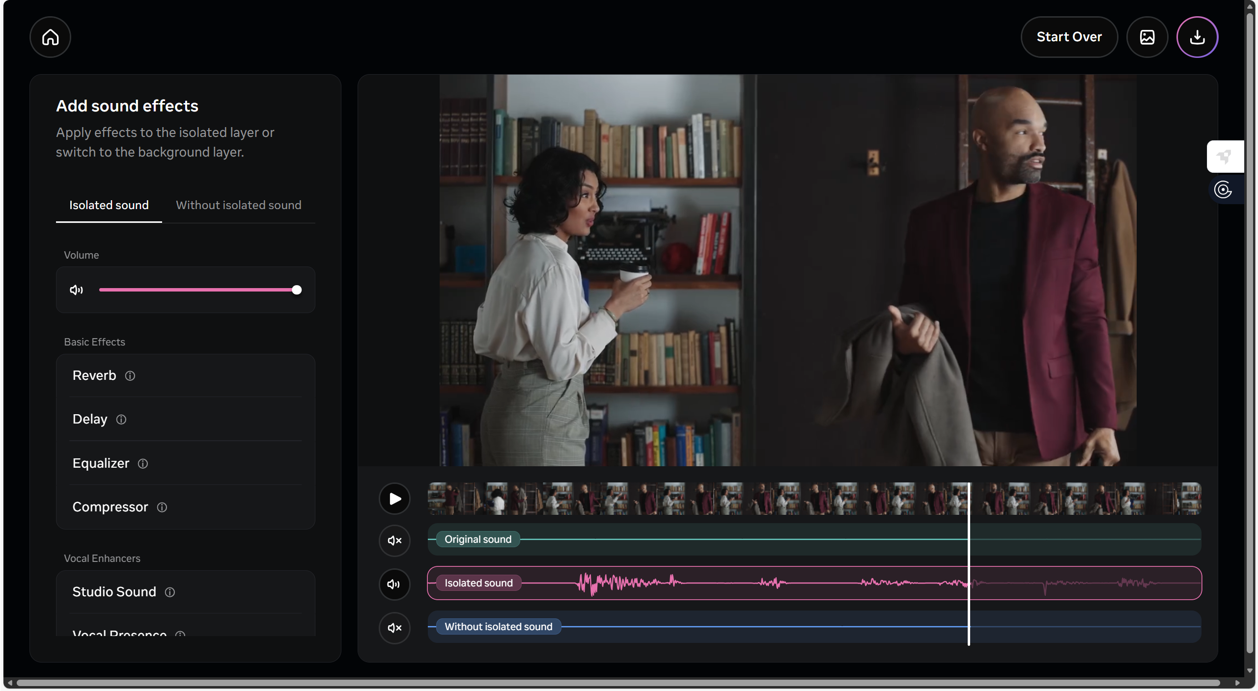 대화오디오 레이어와 공간의 레이어를 각각 추출할 수 있습니다.